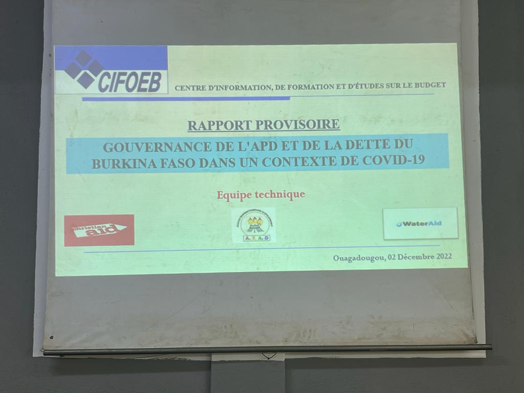 « Gouvernance de l’Aide Publique au Développement et de la dette du Burkina Faso dans un contexte de COVID 19 », c’est le titre du rapport provisoire rédigé par une équipe technique et qui a été soumis à l’appréciation des participants à l’atelier sur la validation du rapport sur l’étude de la gouvernance de l’Aide Publique au Développement et de la dette publique du Burkina Faso dans un contexte de COVID 19. Une étude diligentée par le Centre d’Information de formation et d’Etudes sur le Budget (CIFOEB) en collaboration avec d’autres structures notamment, Christian Aid, Water Aid et ATAD sur la période de 2010 à 2021. Un rapport axé sur le profil de l’Aide Publique au Développement au BF de 2010 à 2021, l’aperçu analytique de la dette publique du BF sur la même période et des recommandations. Dans ce rapport, il ressort qu’entre 2010 et 2021 l’Aide Publique au Développement est en hausse sur la période de 2010 en 2021. En outre, les investissements publics du pays sont fortement dépendants de l’APD malgré que les recettes propres qui s’autonomisent progressivement mais sont absorbées par les dépenses de fonctionnement au détriment de l’investissement. L’aide publique au développement du Burkina Faso provient principalement des partenaires multilatéraux dont les conditionnalités sont plus souples et adaptées au regard des objectifs de développement assignés aux institutions multilatérales. Par contre, la coopération bilatérale est beaucoup plus axée sur l’aide liée et ne s’aligne pas toujours sur les objectifs du pays.