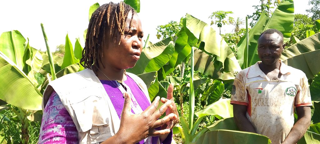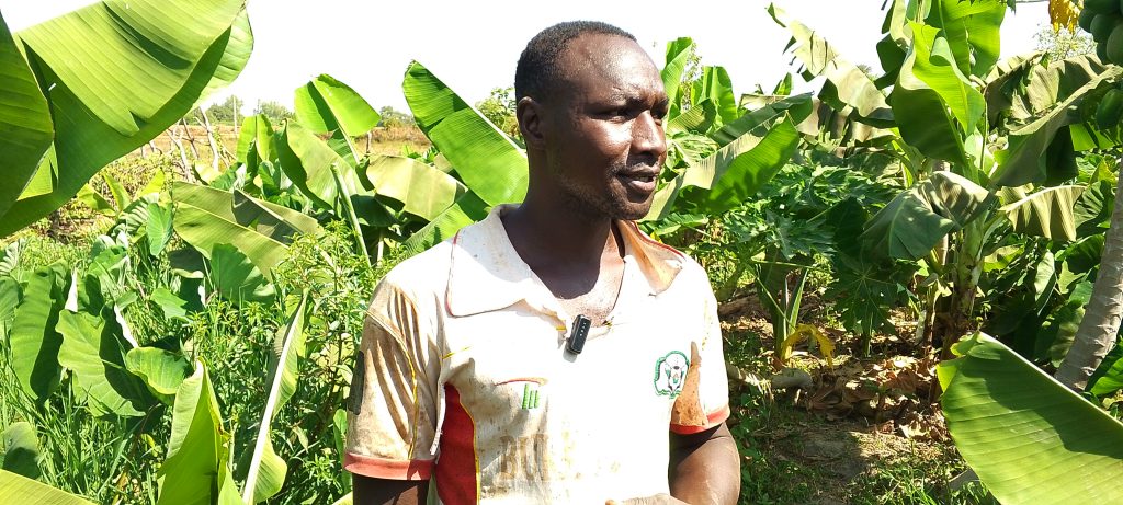 producteur à Ouroubonnon (à Boromo) a bénéficié d’une formation en climatologie et il produit de la papaye, de la banane et le tarot « J’ai bénéficié d’une formation de la part du PAM et cela m’a permis de maitriser un peu la pluviométrie dans l’année et de savoir s’il y’aura sécheresse ou pas au cours de la saison où à la fin des pluies. Grace à cette formation, j’arrive à travailler, à savoir à quel moment je peux semer et à quel moment je ne dois pas semer, quelle variété utilisée même s’il est un peu tard et même si la saison d’hivernage est déjà avancée. Aussi, j’ai remarqué que mes rendements ont augmenté puisque je sais maintenant quelles variétés de graines utilisées pour ne pas être surpris des aléas climatiques. En plus des 1ha de bananeraie, je cultive du maïs, du mil, du sorgho, du coton, du haricot et de l’arachide sur une superficie de 25Ha. Sans vous mentir, cette technique m’a permis d’améliorer mes conditions de vie et de bénéficier beaucoup dans mes productions », déclare-t-elle.