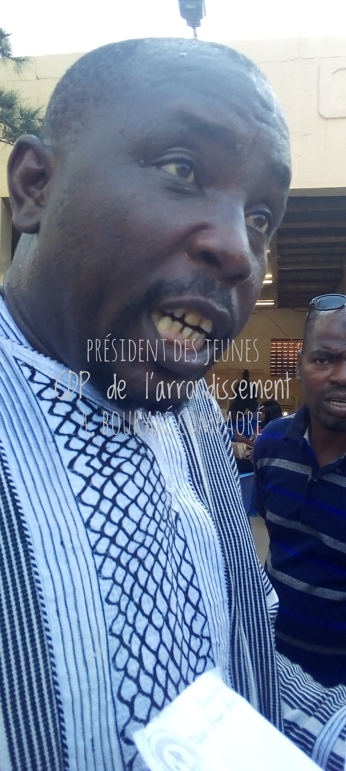 «  Ils sont venus perturber la conférence de presse parce qu’ils ne sont pas d’accord avec notre déclaration. Nous avons une déclaration qui dénonce la gestion chaotique du pays. le Burkina Faso (BF) nous appartient tous et Simon Compaoré a su bien le dire pendant leur conférence de presse de la fois dernière : Que le BF appartient à tous et non au MPP (mouvement du peuple pour le progrès) et on ne peut pas comprendre qu’un militant du CDP et militant de l’opposition politique nationale qui dénonce l’incompétence du parti au pouvoir avec à sa tête le président du Faso veuille perturber cette conférence de presse » Dixit un militant jeune du parti très révolté et en colère.
