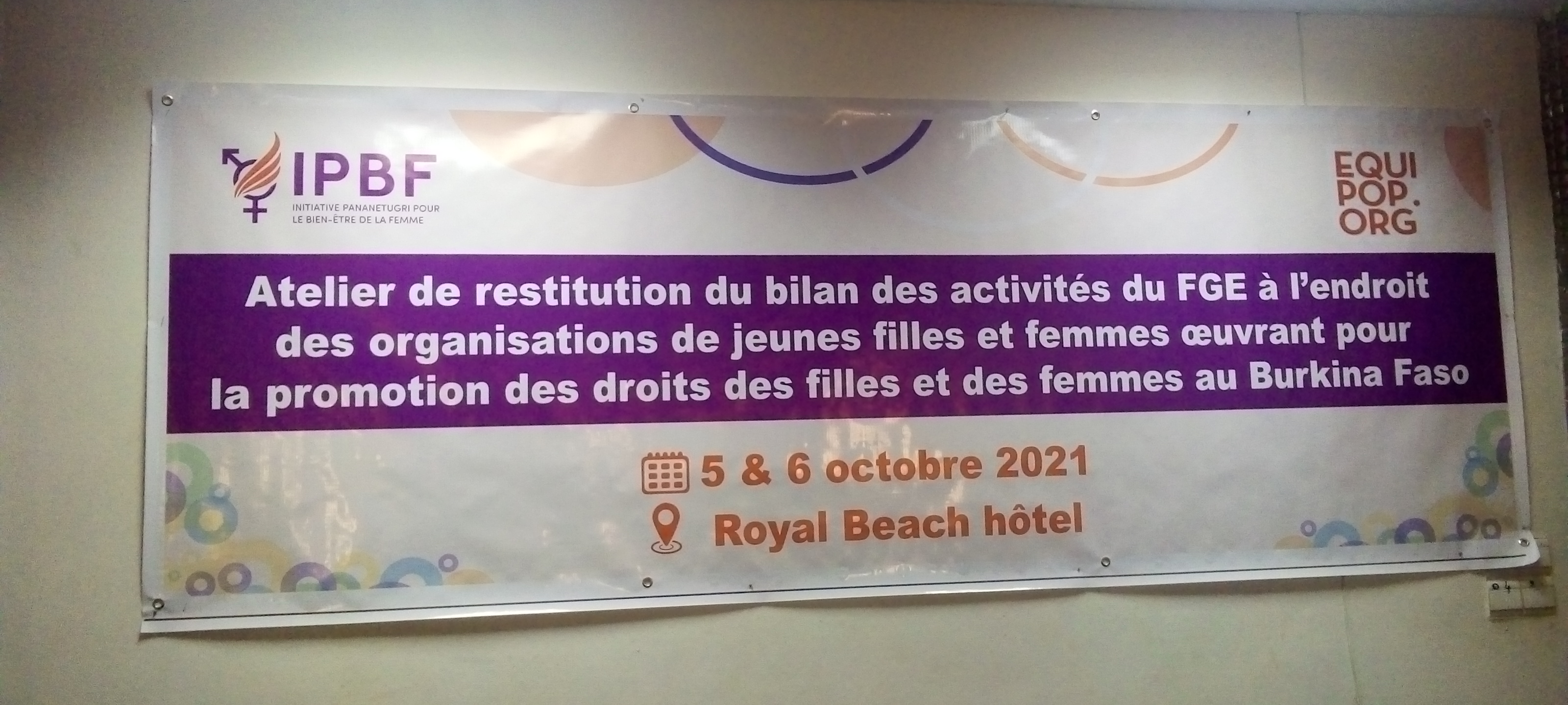 Du 05 au 06 octobre 2021 se tient à Ouagadougou un atelier de restitution du bilan des activités du forum génération égalitaire (FGE) à l’endroit des organisations de jeunes filles et femmes œuvrant pour la promotion des droits des filles et des femmes au Burkina Faso (BF). Cet atelier a été possible grâce à L’initiative pananetugri pour le bien-être de la femme (IPBF).