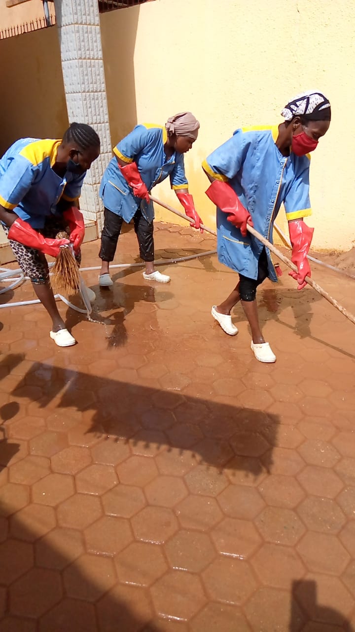 En plus de la capitale Ouagadougou, l’entreprise intervient aussi dans les périphéries même dans certaines villes comme Kaya, Koudougou, a-t-elle poursuivi et de poursuivre que les produits utilisés pour le nettoyage sont surtout l’acide-carreaux, le perfecto, l’Ajax, le savon liquide, l’OMO, l’eau de javel accompagnés de Serpières, de raclettes, de seaux, de balaies, d’échelles, d’aspirateurs et quelques matériels (qu’elle loue par faute de moyens, parce que coutant extrêmement chers).