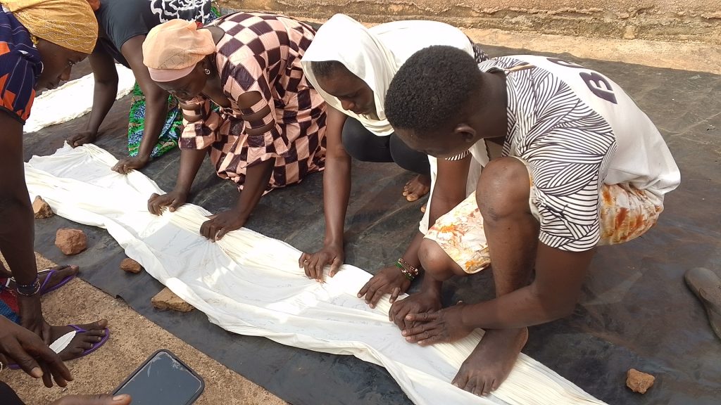 Cette activité rentre dans le cadre de leurs activités, a-t-elle confié « Aujourd’hui, nous fabriquons le kokodunda avec les membres de l’association pour subvenir à leurs besoins et s’acquitter des frais de scolarité des filles (depuis la rentrée, par manque de moyens, il y’a des membres de l’association qui ne sont pas encore allés à l’école). En plus du kokodunda, nous faisons du beurre de karité et du soumbala que nous expédions souvent en Côte d’Ivoire et à Ouagadougou.