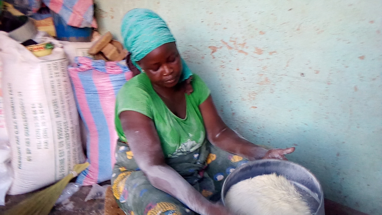 Cela fait trois ans qu’Adjara Dianda exerce dans la vente de farine de maïs.