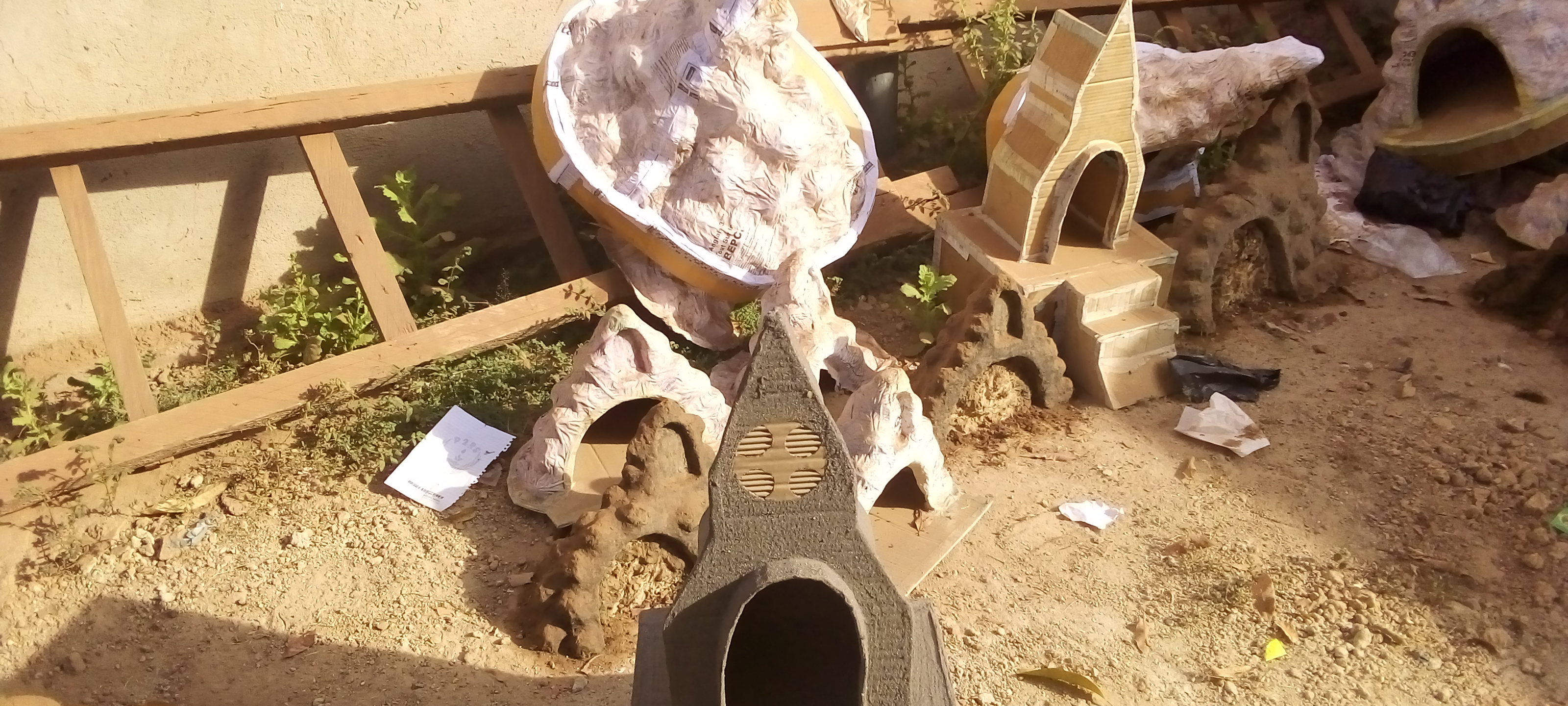 Michael qui utilise le carton, le granite, la colle et la peinture pour fabriquer et embellir ses crèches, a indiqué qu’il se ravitaillait au grand marché (pour le carton, la peinture et la colle) et à Pissy derrière la SONABHY(en ce qui concerne le carburant)