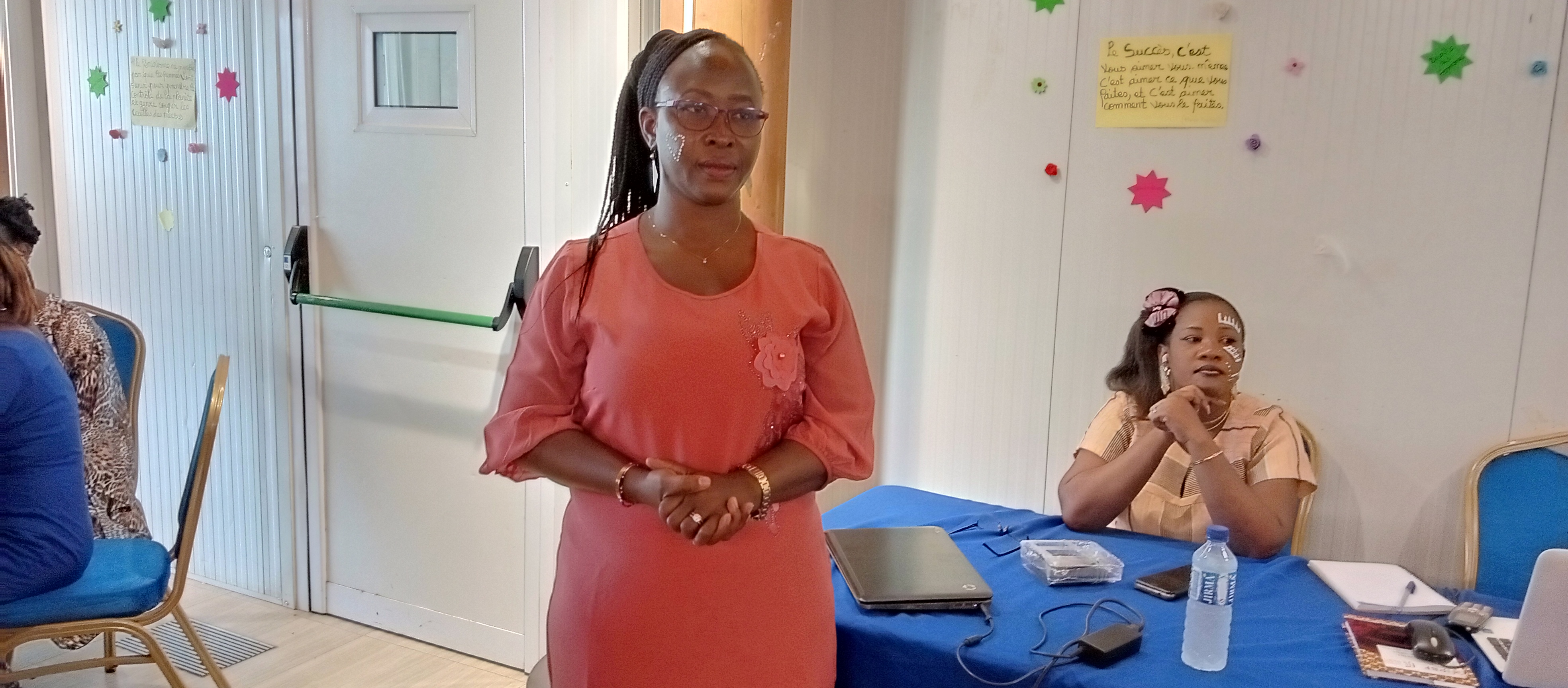 Avant de démarrer la session de formation selon les dires de Micheline, les participantes ont appris à se connaitre mutuellement « il était important que les participantes puissent mieux se connaitre et aussi créer une ambiance collégiale, un cadre vraiment de sororité, un cadre familial, un cadre amical, convivial qui leur permettent d’être à l’aise et nous avons créé cette ambiance , cet environnement à travers des exercices ».