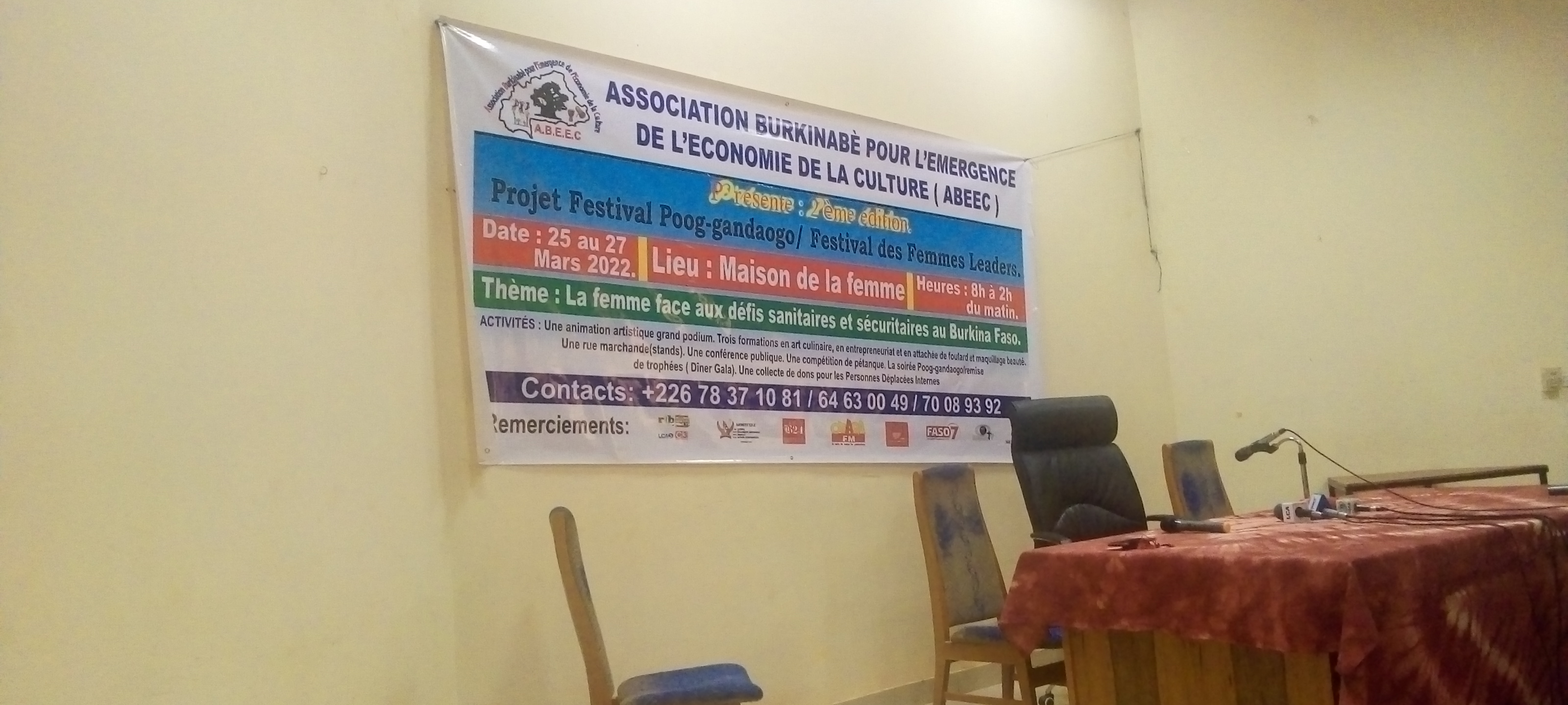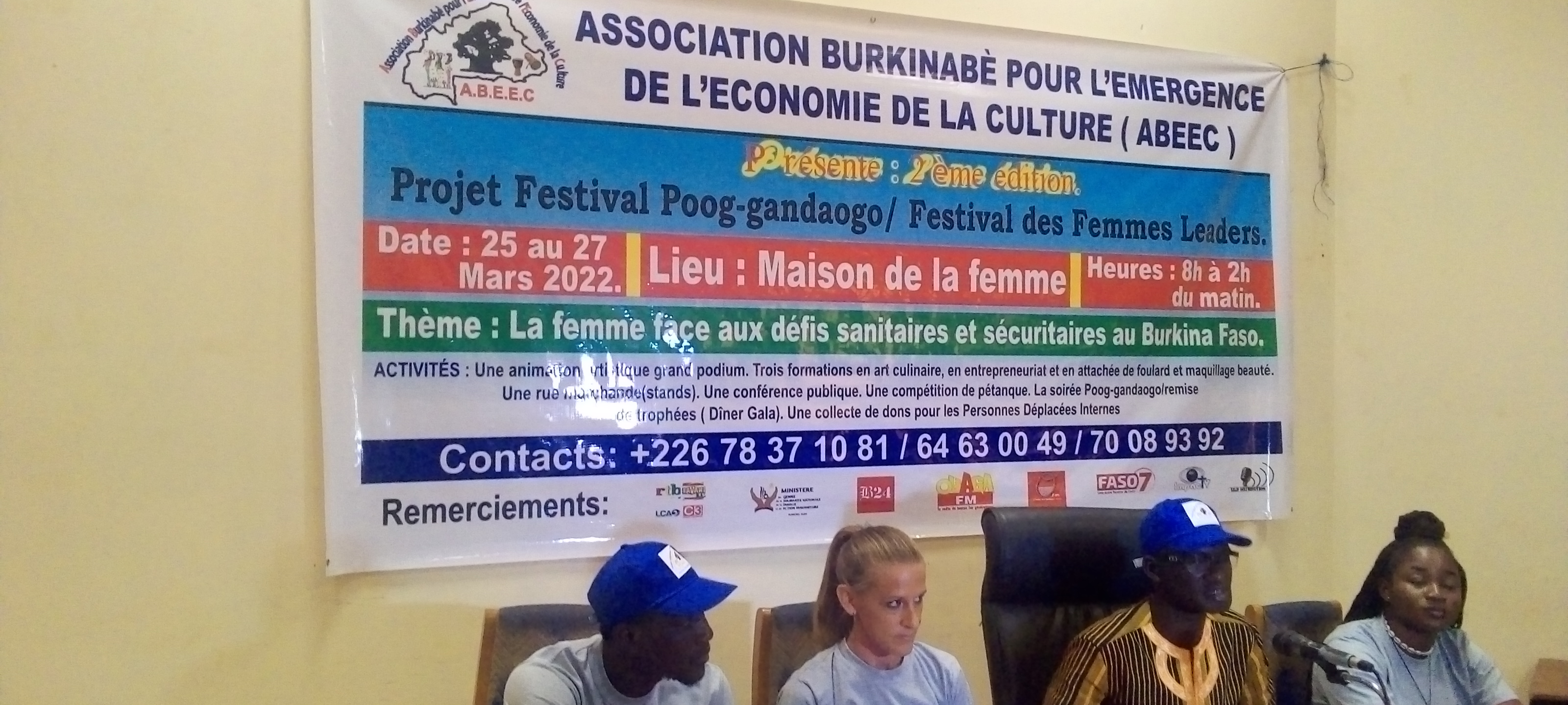 Il faut noter que ce festival est organisé par l’association burkinabè pour l’émergence de l’économie de la culture (ABEEC) et cette association , pour cette 2ème édition a produit un single baptisé « chanté la femme » et a été produit en collaboration avec un collectif de 12 artiste et chanté en 10 langues burkinabés et étrangères dont le éwé du Togo, le sango de la Centrafrique, le fulfuldé de la Guinée Conakry, le bambara du Mali et le créole ont souligné les conférenciers du jour et de conclure qu’ils sont convaincus que le « projet festival Poog-gandaogo/ festival des femmes leaders » contribuera à inciter les femmes à redoubler d’effort et à occuper pleinement leur place dans la société mais également facilitera leur implication dans le processus de développement.