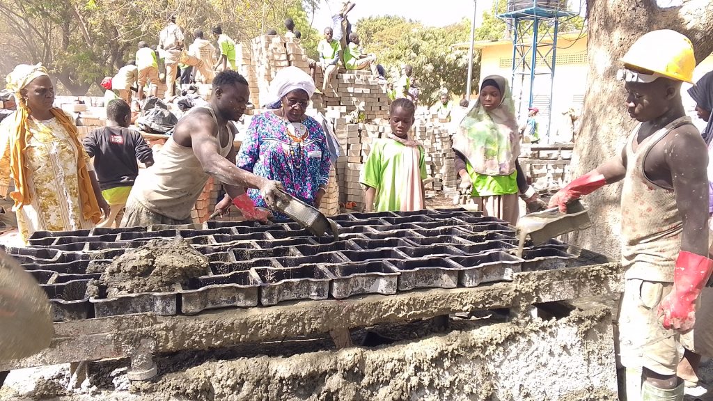 Et pour joindre l’utile à l’agréable, les braves femmes de Yanduanma ont prété mains forte à la section confection des pavés.