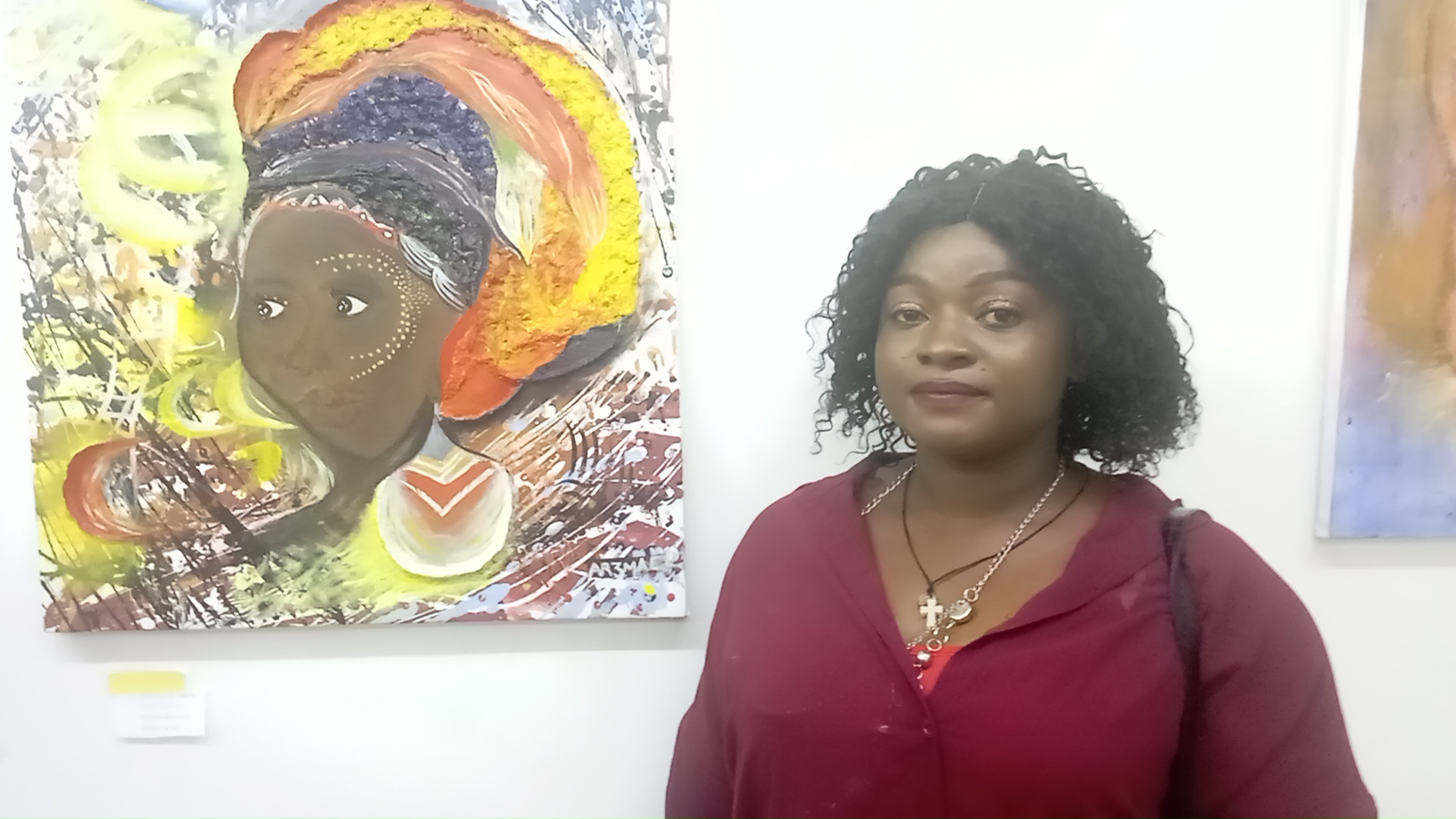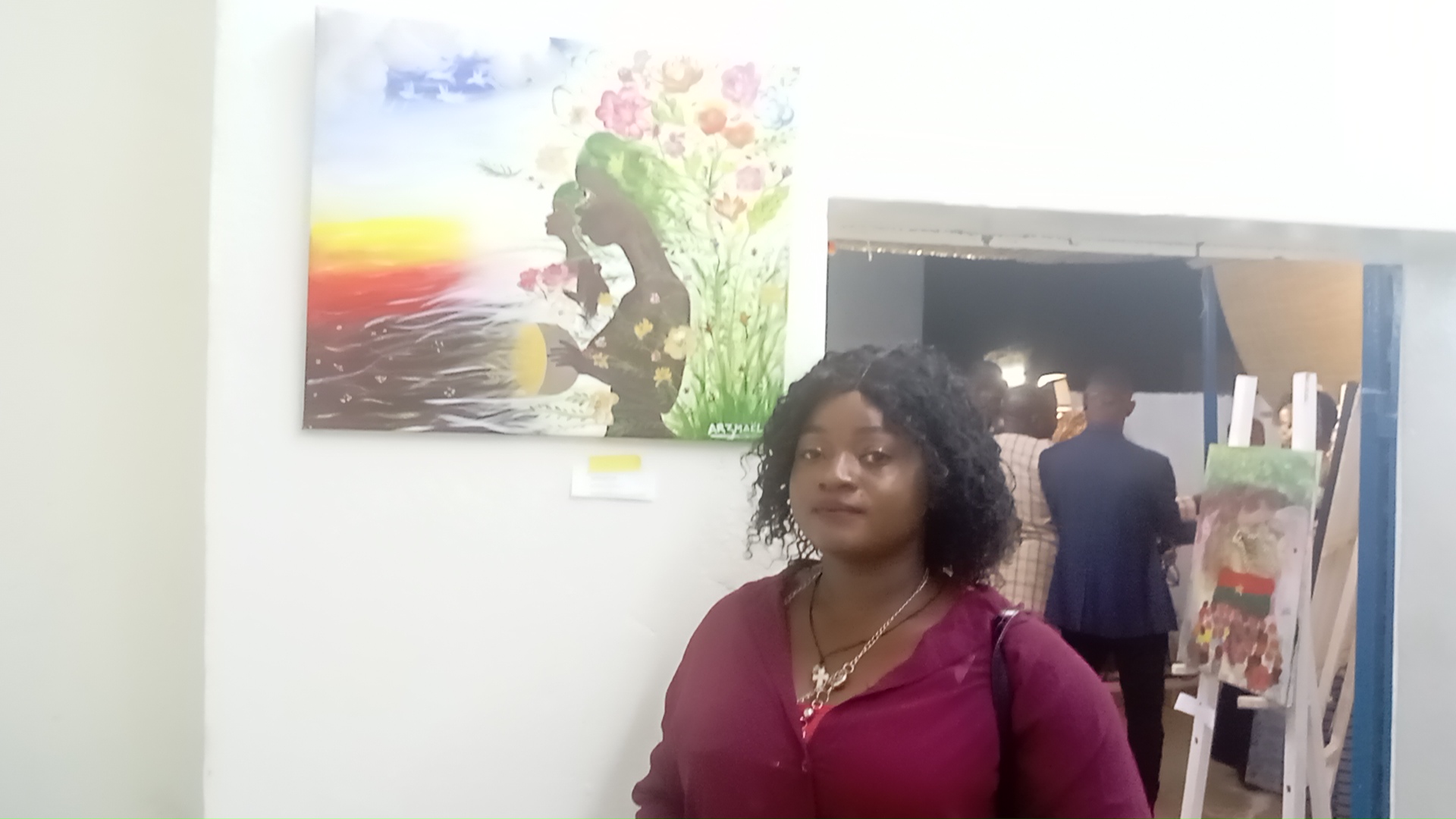« Cette résidence m’a beaucoup aidé parce que je n’avais pas confiance en moi au début : je faisais quelques tableaux à la maison que j’admirais. Cependant, je n’osais pas les présenter au public puisque pour moi, elles n’étaient pas bonnes. Cette résidence m’a permis d’apprendre beaucoup de chose et des autres filles. J’ai nommé mon œuvre « UNION ». Je relève les souffrances au BF, en ajoutant de la positivité ».