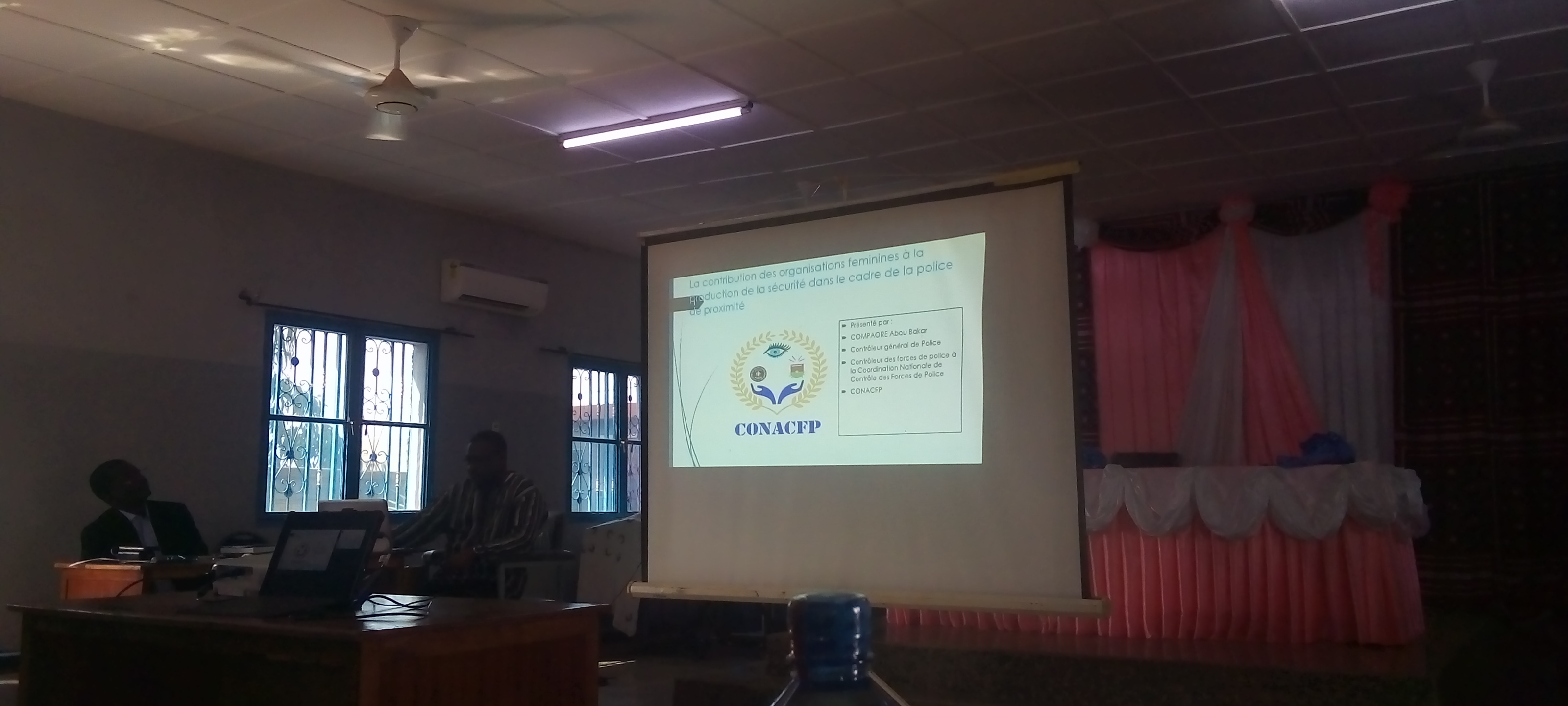 La communication d’Aboubacar Compaoré a porté sur la contribution des organisations féminines à la coproduction de la sécurité dans le cadre de la «  police de proximité (PP) ».