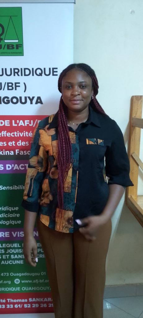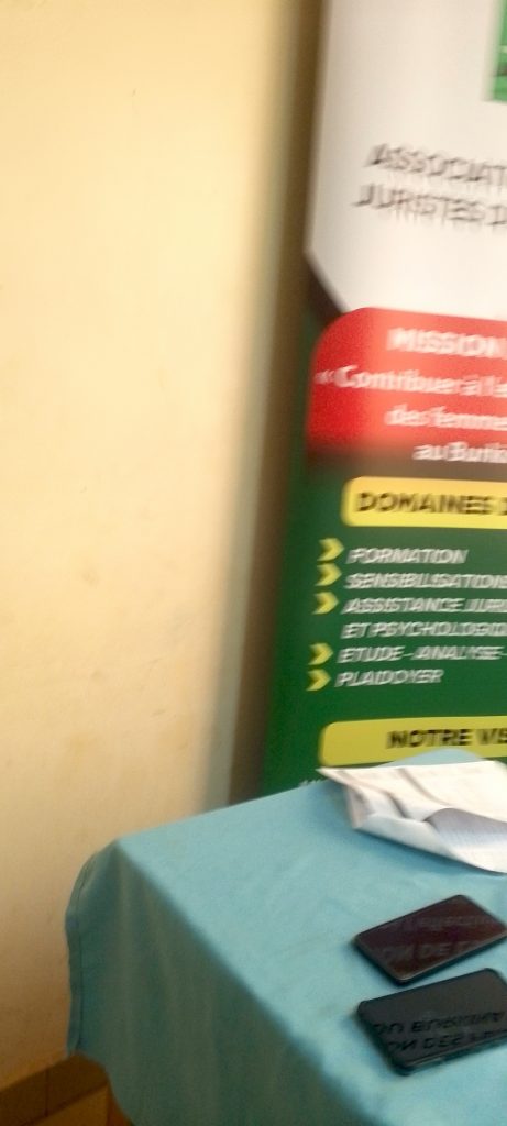 Sonia Blanche Minoungou, Chargée de communication à l’ONG Voix de femmes et point focal PEAS (politique contre l’exploitation et abus sexuel) a salué l’association des femmes juristes d’avoir associer Voix de femmes à cette formation (Voix de femmes qui est membre du Consortium du Projet « Se Défendre »).