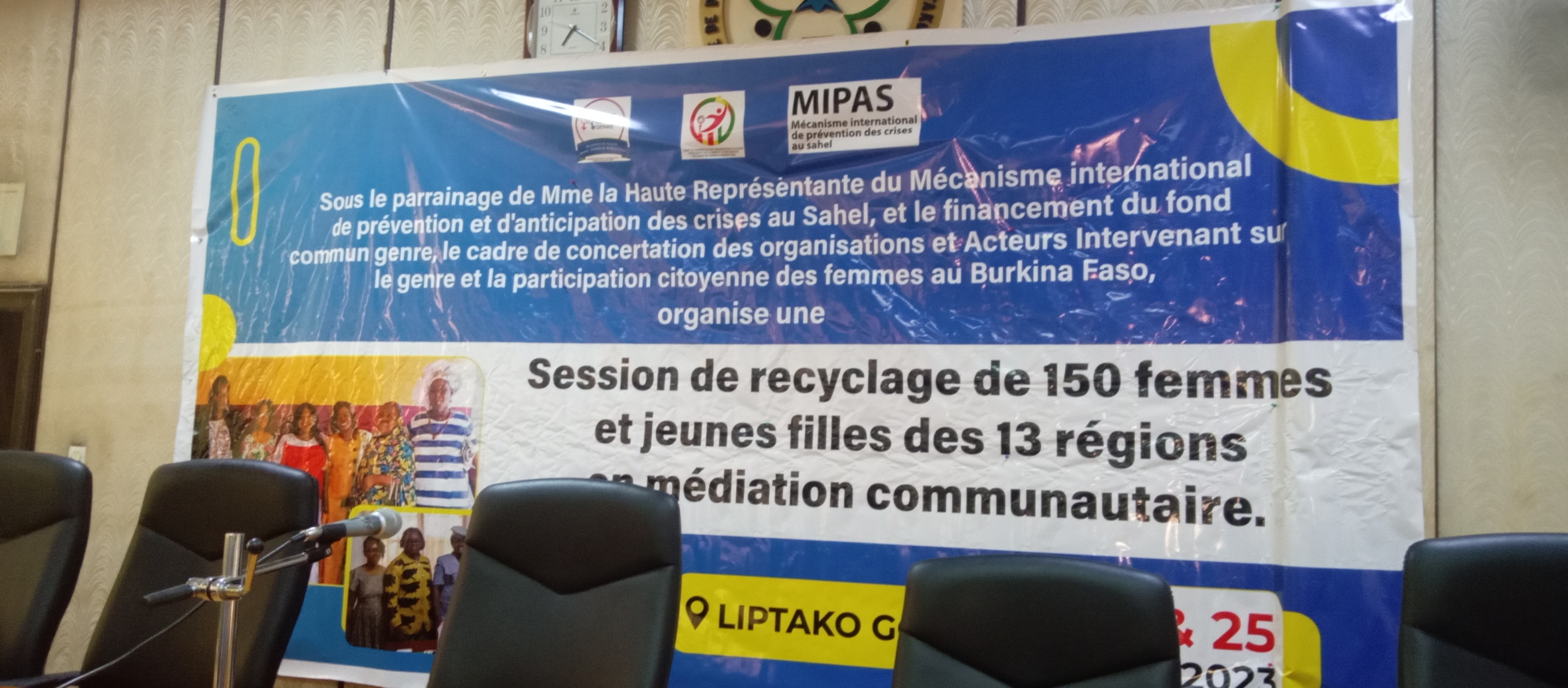 Martine qui est convaincue qu’il y’a des compétences féminines en matière de médiation communautaire et qu’il faille valoriser, et dans le cadre d’une valorisation, son institution et elle ont décidé de mettre les femmes ensemble pour travailler en vue d’harmoniser leurs points de vue, leurs stratégies d’intervention et aussi réactualiser un certain nombre de stratèges, de conceptions des unes et des autres afin de pouvoir converger vers les résultats qu’elles attendent « Effectivement, nous avons 150 jeunes filles et femmes à former et malheureusement ou heureusement nous avons enregistré plus de 400 inscriptions et ce qui nous amène à revoir nos ambitions à la hausse pour pouvoir programmer d’autres sessions et cette session est appuyée par le fonds commun genre dans le cadre du « Projet d’appui à l’inclusion et à la participation de la femme, jeune fille , jeune garçon au Burkina Faso (BF ») et nous espérons pouvoir faire une réactualisation des différents outils , instruments de médiation communautaires.