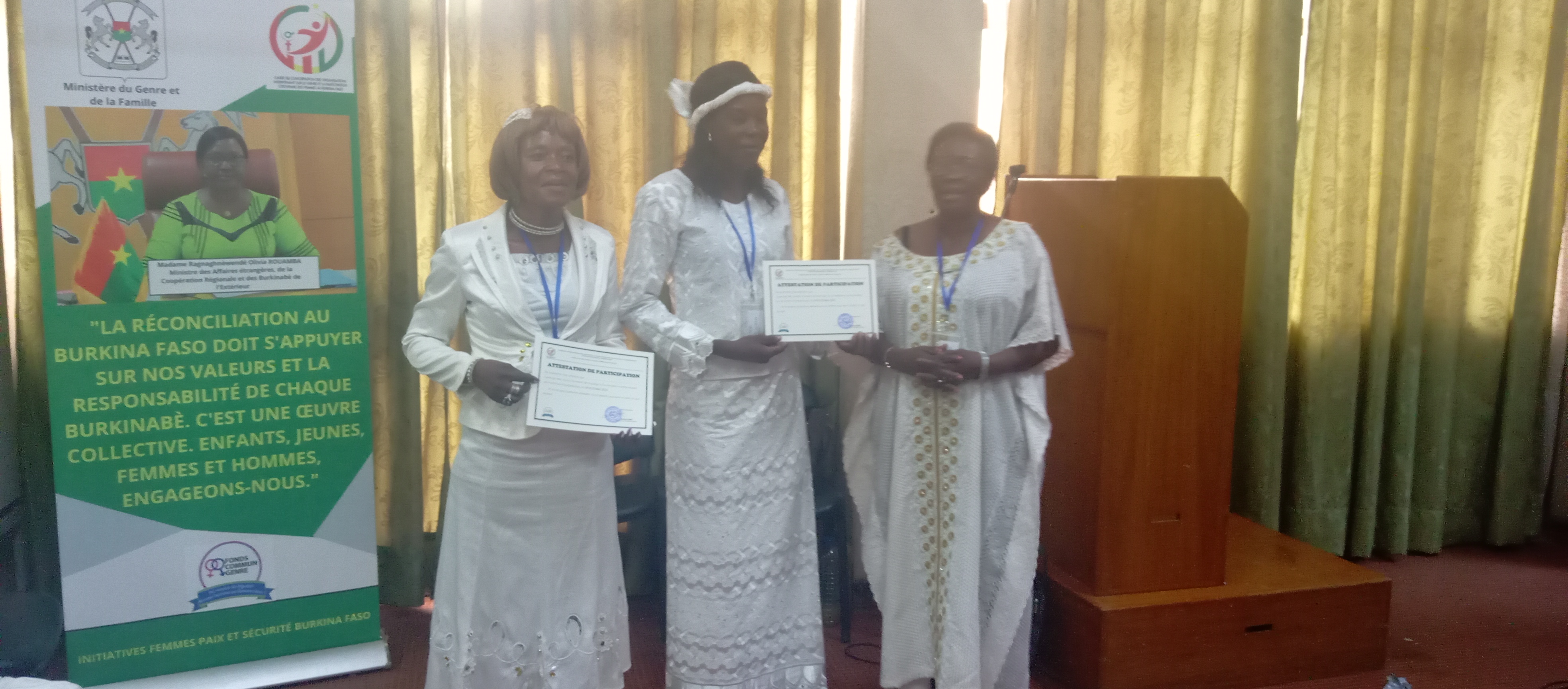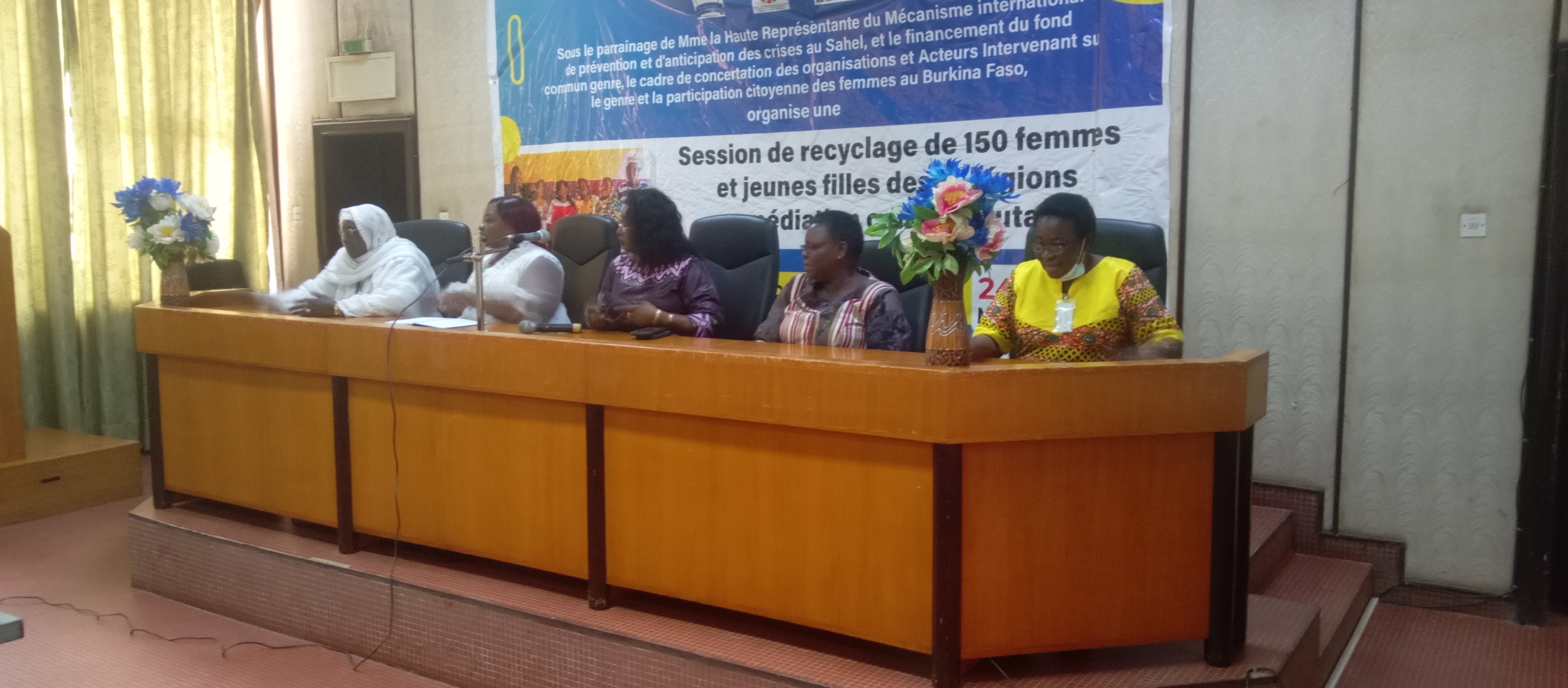 Ces 72h de rencontre ont été une occasion pour les femmes et jeunes filles de créer cette synergie et de réfléchir également sur une approche beaucoup plus communautaire pour pouvoir intervenir jusqu’aux plus petites cellules de nos communautés notamment les familles et autres et ce vivier que nous allons constituer sera déployé pour la mise en place du dispositif que nous avons à venir « Femmes et jeunes filles sentinelles de la Paix au BF » qui doit couvrir tout le territoire national et permettre aux femmes, aux jeunes filles de pouvoir mettre à la disposition de leurs communautés du Burkina un moyen de collecter et diffuser l’information en un temps record et aussi de pouvoir contribuer comme alternative en matière de solution non militaire de lutte contre l’insécurité au BF » .