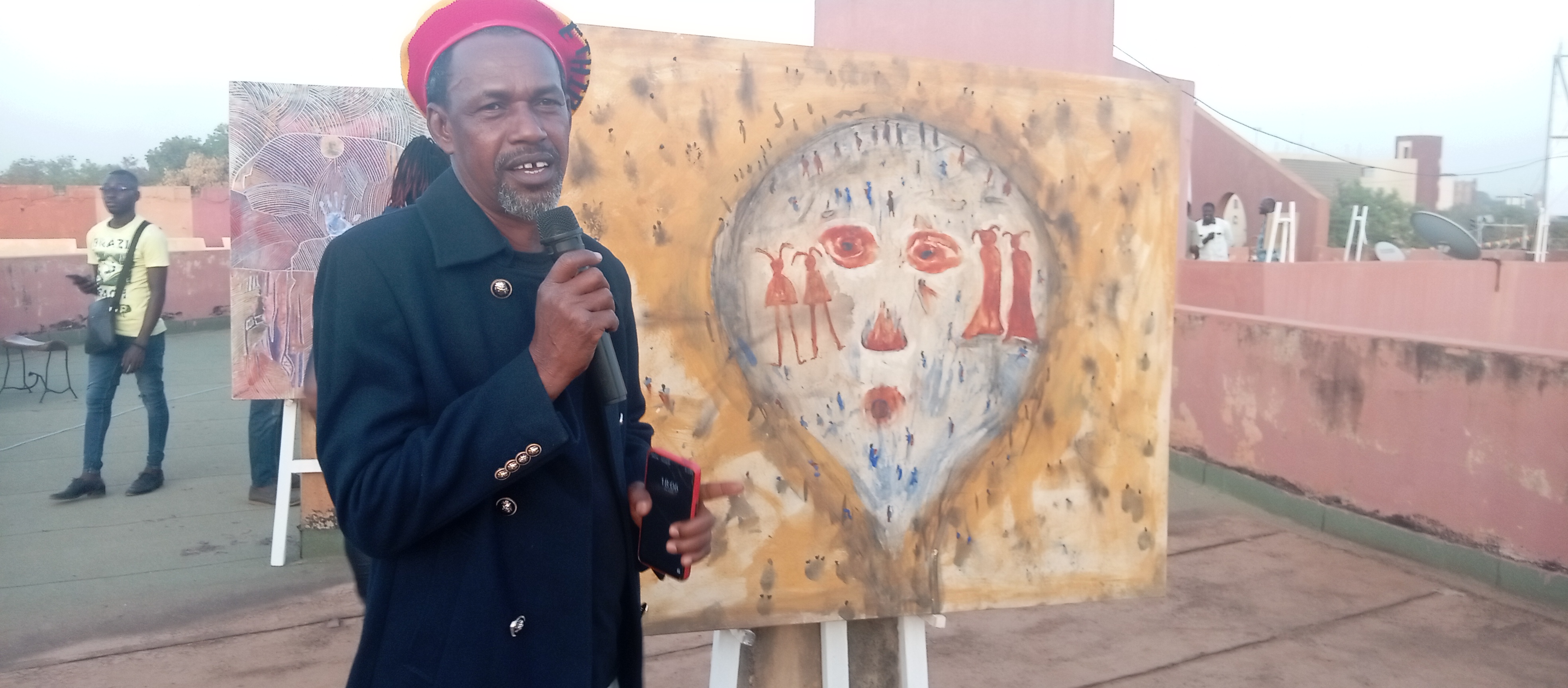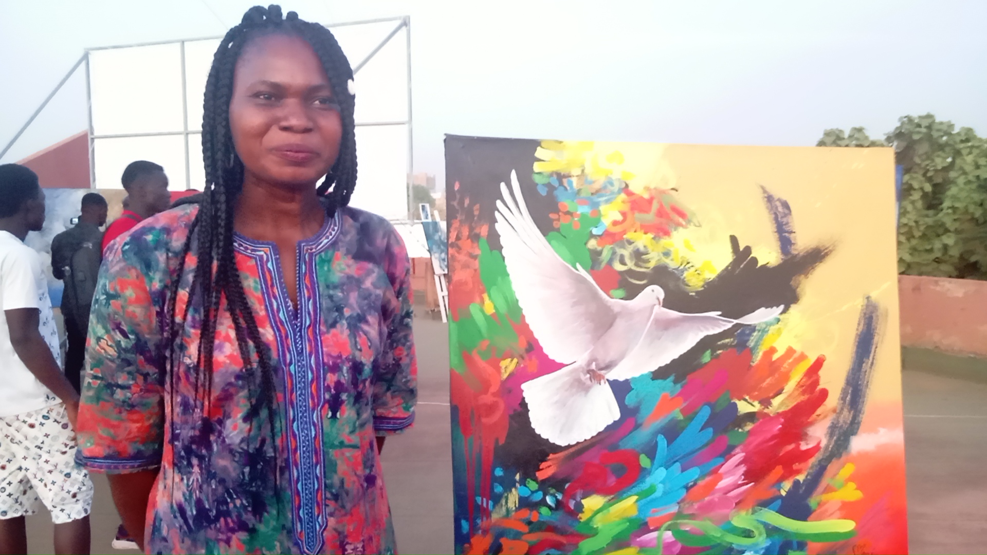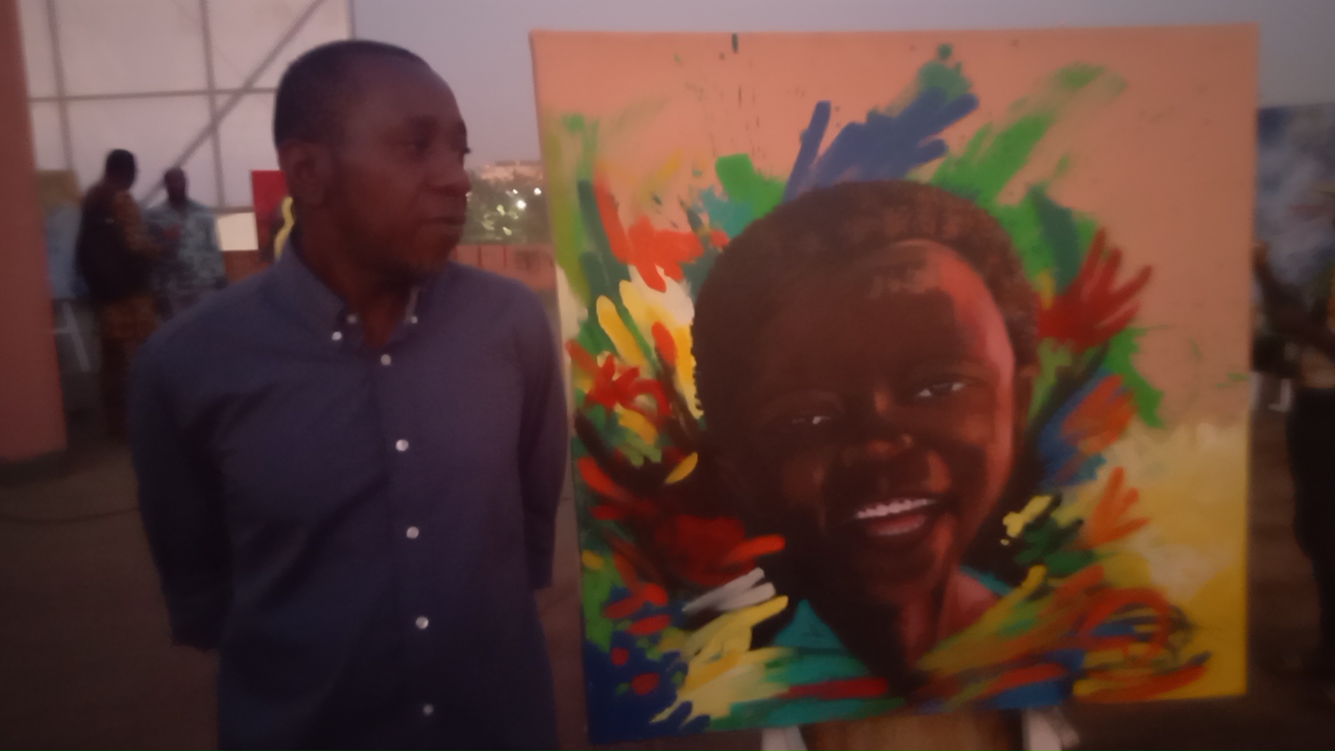 L’artiste peintre et plasticien Sibiri Mané, à travers ses trois œuvres a plongé les participants et admirateurs de l’art dans un Burkina Faso ou règnera la PAIX, la COHESION SOCIALE, le VIVRE-ENSEMBLE, la LIBERTE, la JOIE.