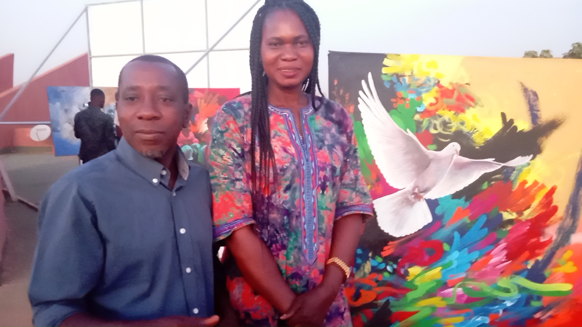 Le ministère de la culture ayant constaté l’insuffisance des professionnels d’art surtout de Curateurs d’arts (qui sont en manque au BF), a décidé de les outiller dans ce domaine a-t-elle ajouté « Lorsque nous avons des évènements, nous sommes toujours obligés de faire appel à des compétences extérieures pour nos expositions. C’est dans cette optique que le Biso Off a initié un Projet pour nous former en comment organiser une expo du début jusqu’à la fin ; comment déjà penser l’expos, comment trouver les artistes pour faire l’expo, trouver les titres et accompagner, faire la scénographie et c’est tout cela qui a donné ce que vous voyez ce soir. Ce soir, ce n’est pas le travail d’une personne, ce n’est pas non plus le travail d’un seul Curateur, c’est le travail de 8 Curateurs qui ont sélectionné 15 artistes dont trois femmes pour exposer ce soir autour du thème CULTURE DE LA PAIX. L’exposition reste visible jusqu’au 5mars, tout le temps du FESPACO. Donc, nous invitons la population burkinabé, les festivaliers du FESPACO à faire un tour à cette exposition parce qu’il y’a des œuvres ‘FOU’ et nous avons travaillé à avoir des prix sociaux et les prix varient de 150.000FCFA et plus, l’œuvre n’a pas de prix et si le client est intéressé, on voit avec l’artiste ».