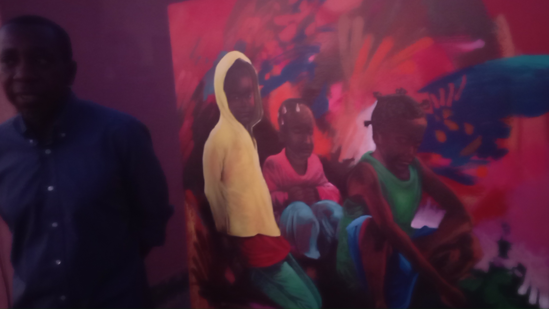 a aussi une signification, a-t-il poursuivi « pourquoi sur les enfants ? parce que je pense que tout ce qui touche à la PAIX, TOUCHE BEAUCOUP AUX ENFANTS, et lorsqu’il n’ya pas la PAIX, les enfants sont aussi touchés ; c’est vrai que les adultes en souffrent aussi et souvent les enfants sont privés de leur LIBERTE. Donc, voir des enfants malheureux me rend très triste. Ici, nous avons des enfants qui jouent : un enfant qui détourne son regard du spectateur, un enfant qui est en train de jouer ou de méditer. Il faut développer plus de capsules éducatives pour les enfants puisqu’ils puissent grandir avec la PAIX dans le cinéma ».