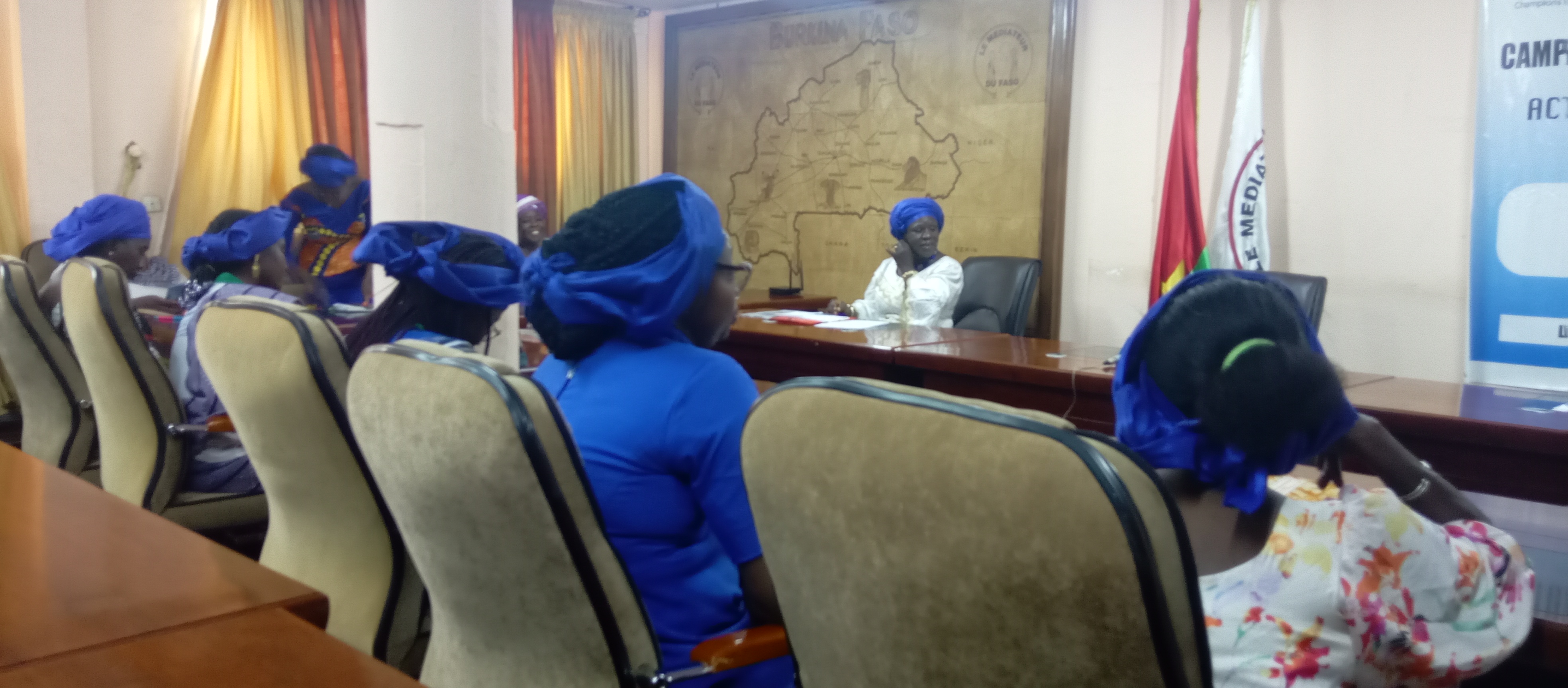 Le Médiateur du Faso qui s’est réjouie d’une telle visite, et a reconnu que c’était à point nommé que ce Plaidoyer vienne à leur niveau parce que cela rentre également dans leurs missions « Aujourd’hui, je me retrouve à la tête de cette institution qu’est le Médiateur du Faso et les missions de cette institution de façon générale, c’est de Défendre les Droits de tous les citoyens Burkinabés et lorsqu’on parle de citoyens Burkinabés, vous le savez déjà, les femmes constituent plus de la moitié de ces citoyens qui ont des problèmes et aujourd’hui avec l’insécurité, les Droits des femmes qui avaient du mal à être vraiment appliqués, se sont exacerbés , c’est donc à point nommé que ce Plaidoyer vienne à notre niveau et nous recevons cela avec humilité parce que cela rentre également dans nos missions . Le Médiateur du Faso est investi également de pouvoirs de proposition de réforme législative et je le disais qu’à notre actif, nous avons déjà fait le Plaidoyer pour l’amendement et pour l’adoption de plusieurs textes de lois suite à des saisines de certains citoyens pour dénoncer des dysfonctionnement et cette fois-ci, il est question pour nous de plaider auprès de qui de Droit pour l’effectivité des Droits des Femmes surtout en cette période difficile ou comme a dit donc la coordonnatrice, ce sont les femmes qui payent le lourd tribut dans cette guerre ( Près de 84% sont des personnes déplacées internes et ce sont des femmes . On fera le Plaidoyer et des recommandations pour aider les décideurs de ce pays à ce qu’on ait un Mieux Vivre pour la MOITIE de l’HUMANITE ».
