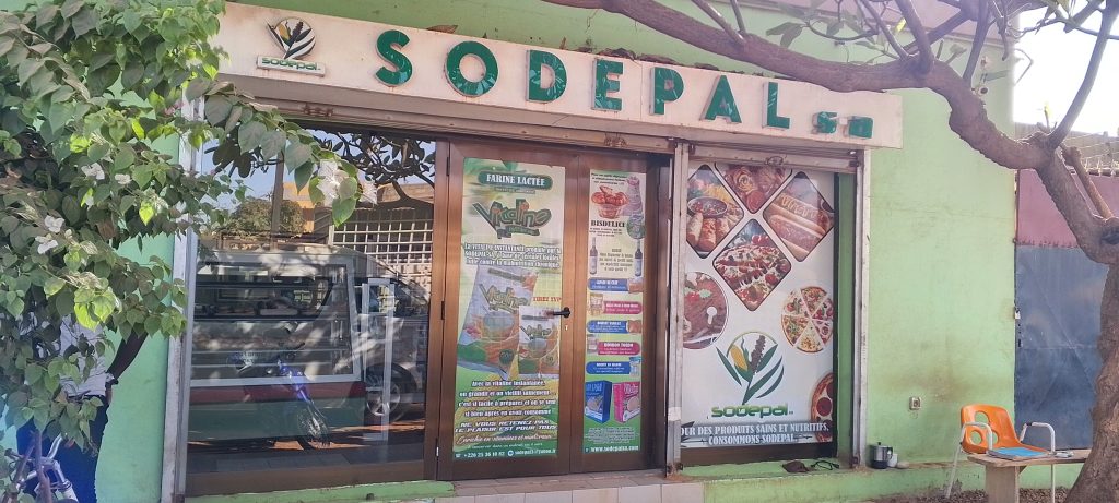 1ère unité de production soutenue par le PAM au BF en novembre 2007 ; SODEPAL produit de la farine infantile fortifiée faîte à base du maïs, du soja, de l’arachide, du mil, du lait et du sucre. Cette farine renforce le système immunitaire et permet la croissance de l’enfant (c’est un complément à l’alimentation de l’enfant et ne remplace pas le lait maternel).