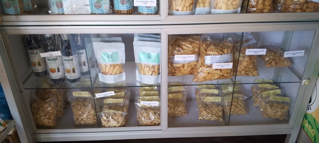 Les prix varient de 1200FCFA (pour les sachets de 500g que nous disposons pour le moment sur le marché) et les petits grammes pour les essais qui coûtent 200FCFA. On emploie actuellement une trentaine de personnes qui travaillent en temps plein et en cas de demandes très fortes, on fait recours à des contractuels.