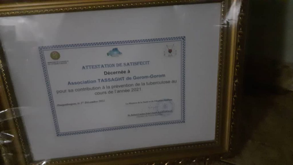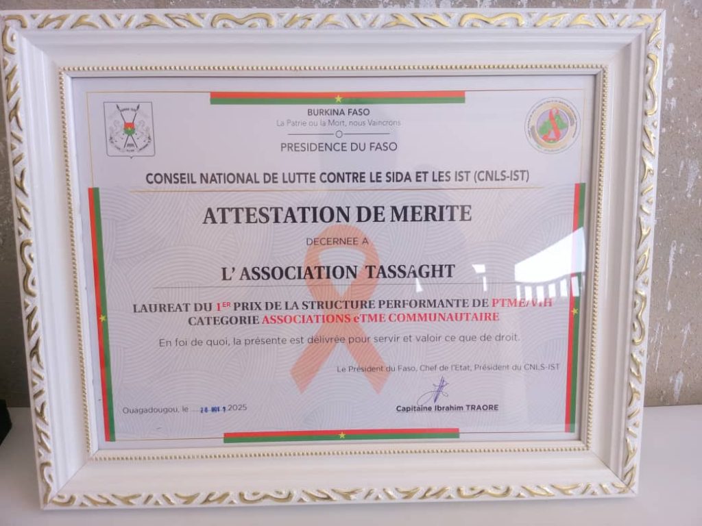 L’association TASSAGH intervient dans la prise en charge de VIH /SIDA et compte ajouter la syphilis et l’hépatite B ; c’est ce qui lui a permis d’être décorée à trois reprises par le Conseil national de lutte contre le SIDA et les IST (SP/CNLS-IST), a confié sa Présidente « Notre association est la 1ère association à avoir reçu le prix sur la prise en charge des femmes enceintes (qu’on dépiste).  Dès qu’une femme est enceinte, elle est automatiquement dépistée et prise en charge et nous suivons trois centres que sont le centre d’Essakane, le centre urbain et le CMA de Gorom-Gorom. Les deux 1ers prix (2021 et 2022 ont été reçu grâce à notre lutte contre   la tuberculose) et le 3ème prix (reçu le 5décembre 2025 ; c’est sur la prise en charge de toutes les femmes enceintes dépistées sur le VIH /SIDA et dans ce programme, l’association a été reconnue comme 1ère association du Burkina Faso (BF) ».